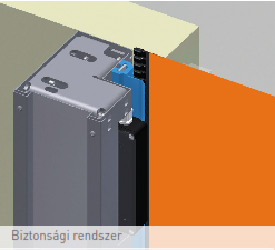 A csendes működést a speciálisan kialakított oldalsó megvezető sínek biztosítják, melyben a szorosan elhelyezett zip-zárak és speciális alátétek elnyelik az esetleges vibrálást.